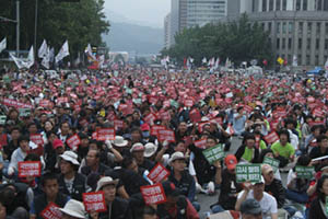 President Bush has caused quite a stir in Asia recently, especially in China today. Before China though he was in South Korea where thousands of protesters had the city of Seoul in an uproar for the past two months. South Koreans are protesting the import of US beef with its risk of mad cow disease that threatens the health and lives of the public. Above, Riot police running down the main street in front of City Hall in Seoul, South Korea on the morning of June 26th. Police were clearing the demonstrators from the road so that they could open up traffic after another night of demonstrating.