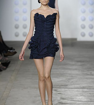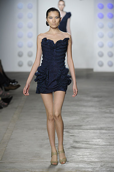 Jade Kang, the only Asian designer nominated, is Korean but came to London in 2002 and graduated from London College of Fashion in 2005. Since his graduation, Kang worked for Giles Deacon, Alexander McQueen and Jonathan Saunders.