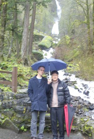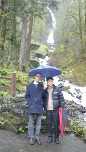 Although American wedding tradition permeated the formal festivities, it was the sharing of home life and the vigilant acupuncture treatment that pleased my heart that weekend. Jennie’s father made a special point of feeding us breakfast and taking us to see some sights. And as I stood beside Jennie’s father and Richard under an umbrella in midst of a downpour admiring mammoth Multnomah Falls, a bag of praline “beaver poop” in my mitts, I realized how good it was to just be another human blessed with good friends.